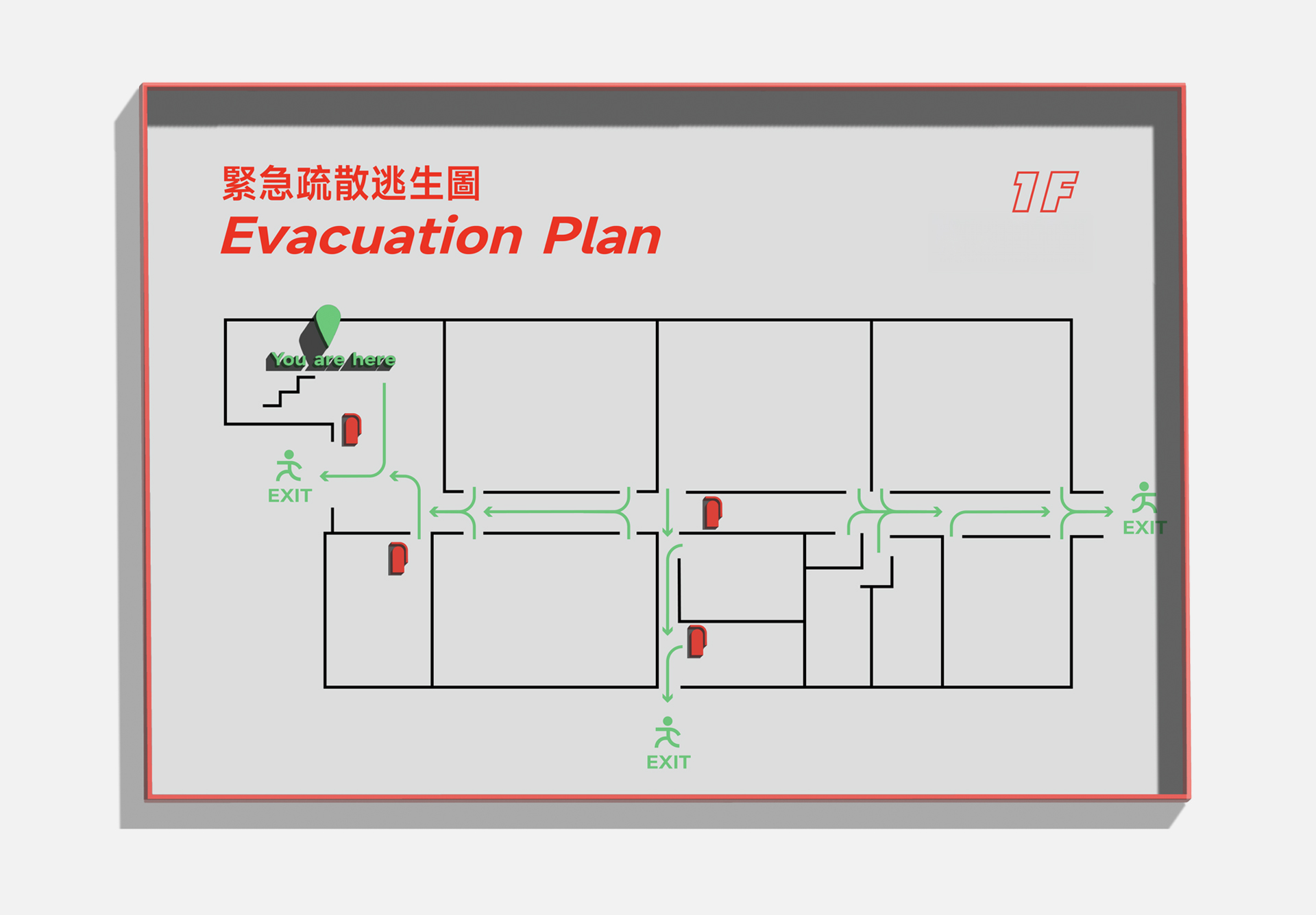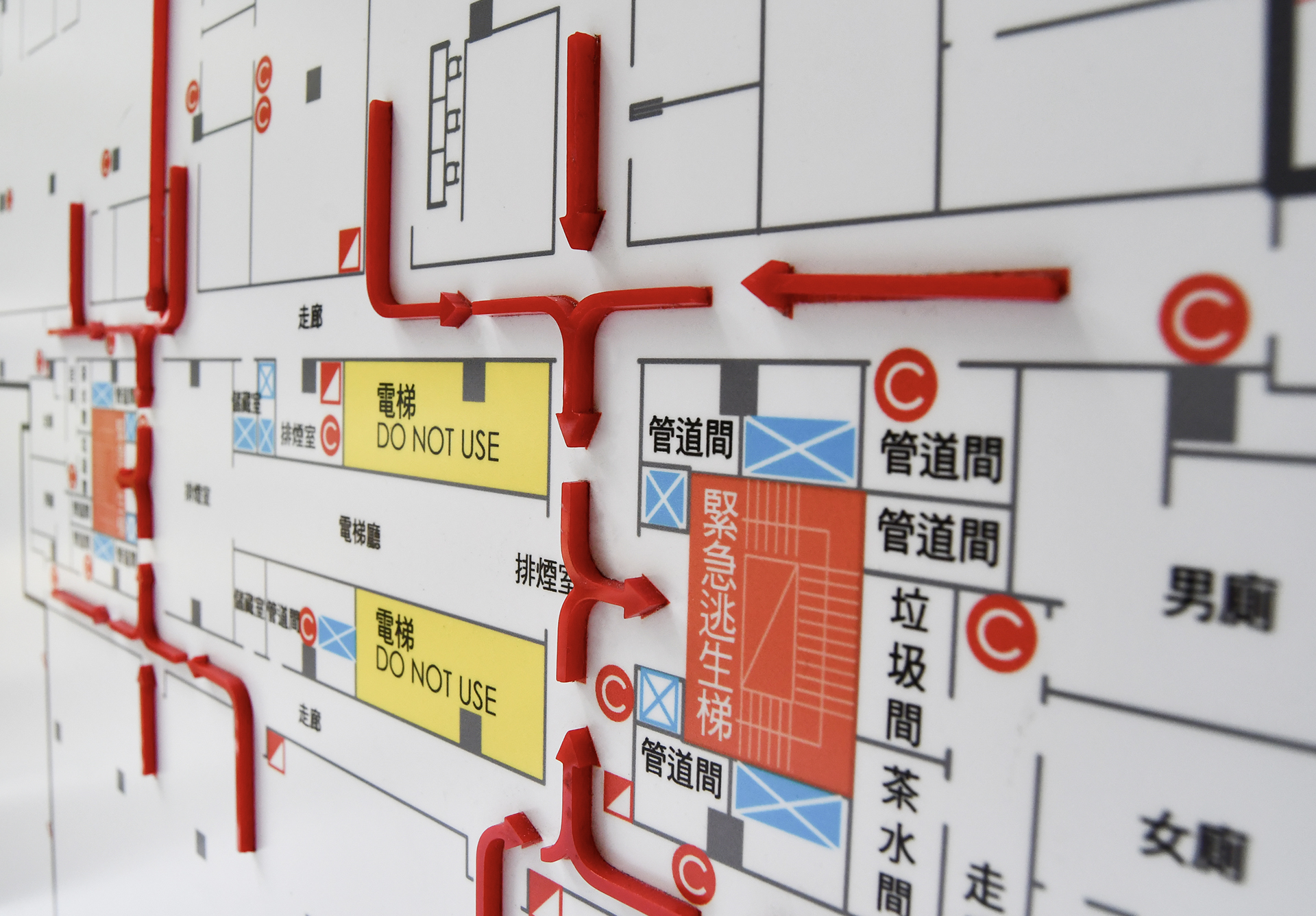 當災害發生時,以「立體化」、「動線強化」、「辨識度高」為核心,協助使用者在緊急時刻能快速判斷方向、爭取自行或協助他人逃生黃金時間。
