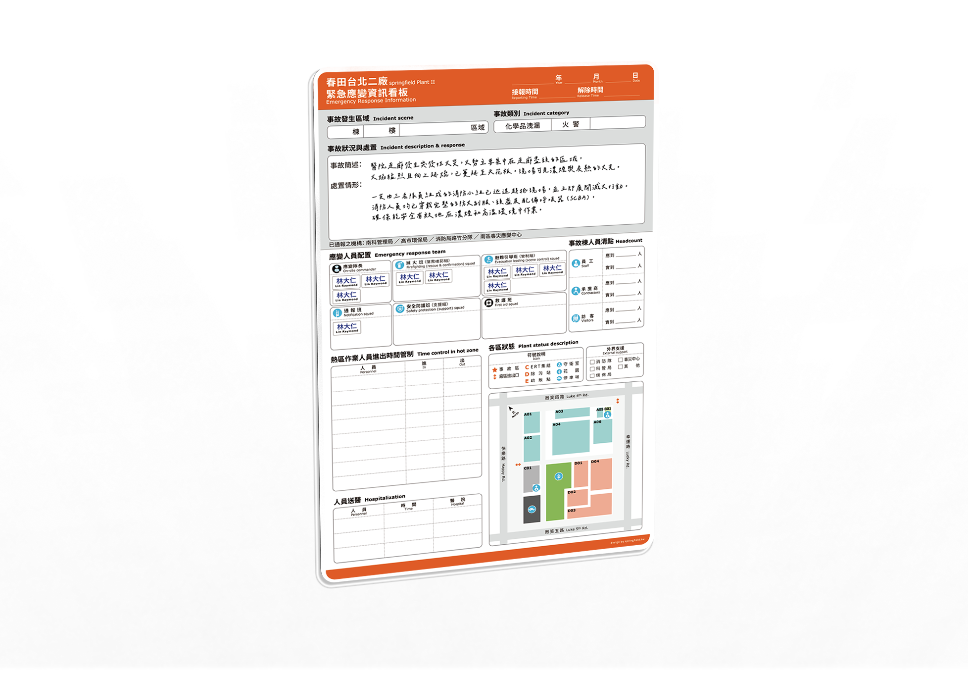 救災資訊板電子化,可與遠端同步最新資訊,強化全體人員緊急應變與安全效率。