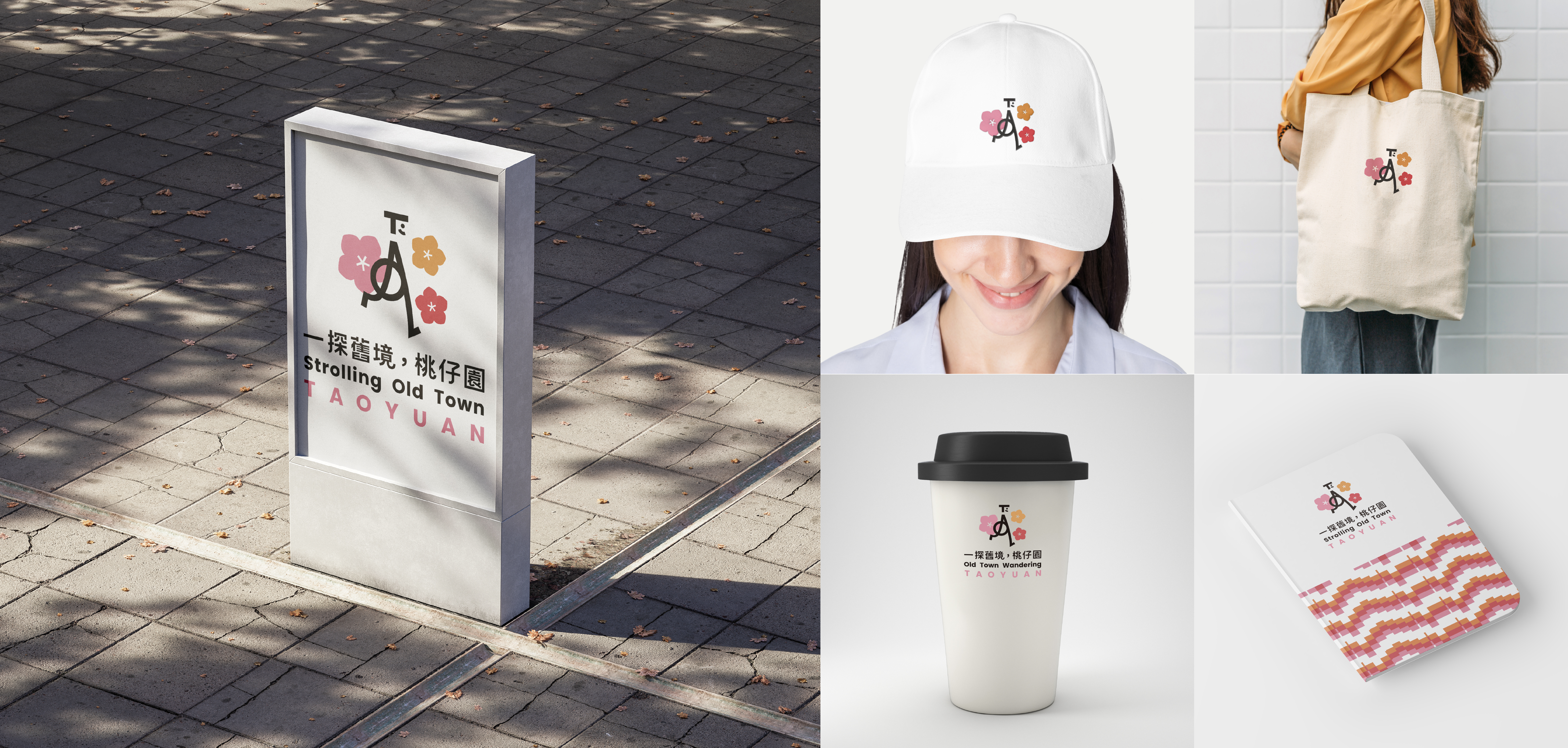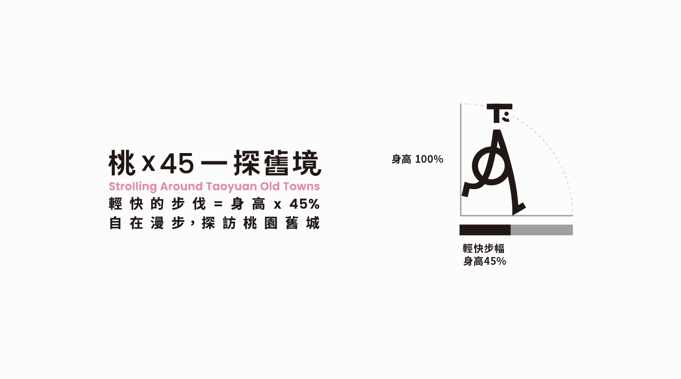Taoyuan( 桃園) 裡的TAO 化身為輕快行走的人形象,主視覺亦可靈活搭配城區特色。舊城再生,邀請邀請大家以輕快的步伐來桃園一探究竟,回流舊城區,再現舊城風華。