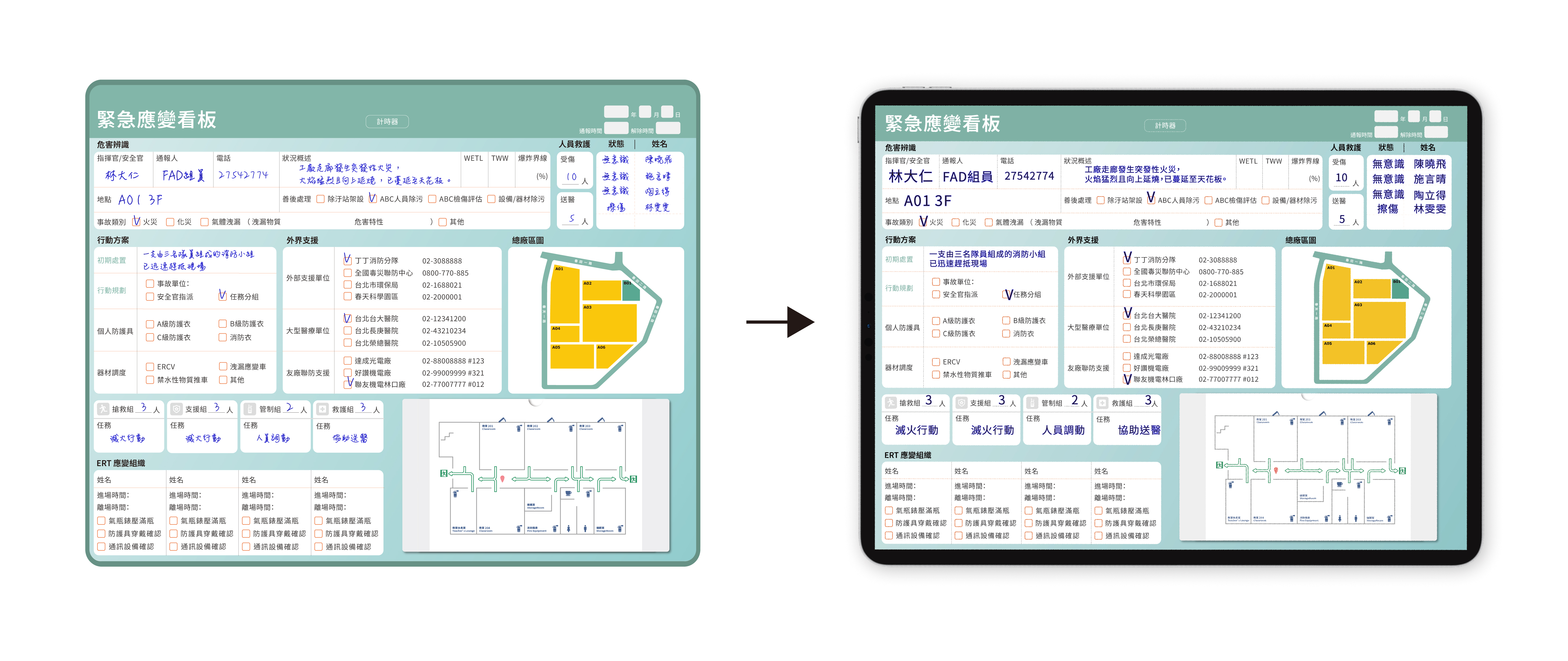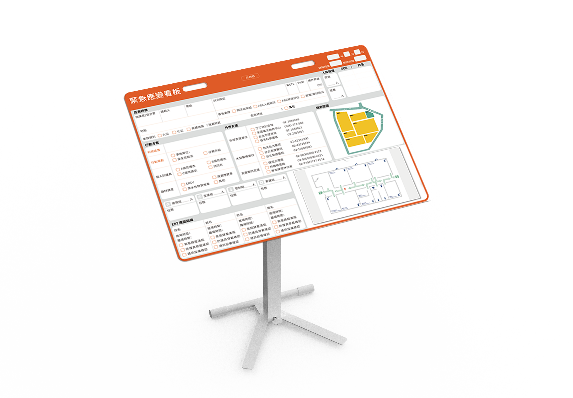 救災資訊板電子化,可與遠端同步最新資訊,強化全體人員緊急應變與安全效率。